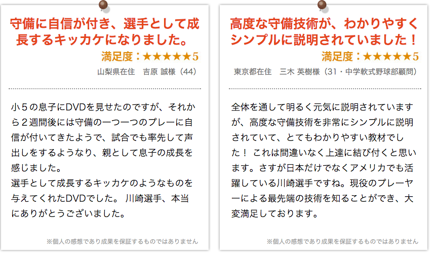 そこで川崎選手がこれまでの野球経験の中で「コレは本当に効果があった」と自信を持ってオススメされる「守備が上手くなる練習法」を全て盛り込んだ守備上達DVD教材を制作してくれました。